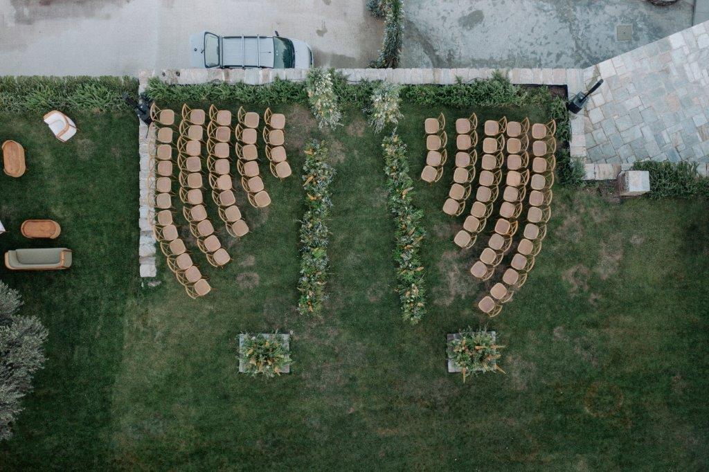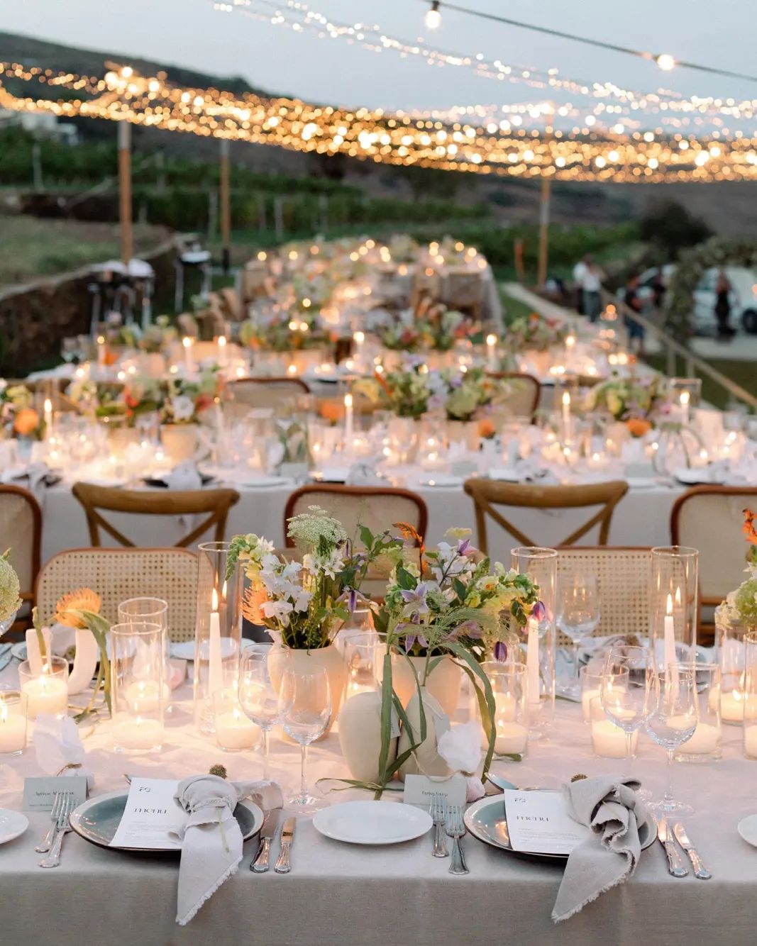 Η ατμόσφαιρα του κτήματος συνδυάζει τη γαλήνη του αμπελώνα με τη ζεστασιά της νησιωτικής φιλοξενίας. Ο φυσικός περιβάλλοντας χώρος, με τα πεζούλια, τις ελιές και τα αμπέλια, δημιουργεί ένα μοναδικό σκηνικό για αξέχαστες στιγμές. Η ομάδα του κτήματος αναλαμβάνει τον σχεδιασμό κάθε λεπτομέρειας, προσαρμόζοντας τον χώρο στις ανάγκες και τα όνειρα κάθε ζευγαριού ή εταιρείας.