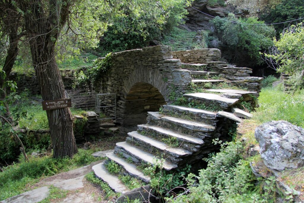 Στο τέλος της διαδρομής θα βρείτε το πανέμορφο Γεφύρι της Αγάπης στην Άνδρο. Το γεφύρι όπου ο έρωτας της Όρσας και του Σπύρου πήρε σάρκα και οστά. Το σημείο που έδωσαν το πρώτο τους φιλί και ξεκινήσει αυτός ο κρυφός έρωτας, προστατευμένος από την υπέροχη φύση της Άνδρου, μακριά από όλους όσους ήθελαν το κακό του ζευγαριού. Ωστόσο, καθώς το γεφυράκι αποτελεί το πιο πρόσφατο αξιοθέατο του νησιού – λόγω της ταινίας – μην εκπλαγείτε, που πολλοί ηλικιωμένοι ντόπιοι δεν το γνωρίζουν ως το «Γεφύρι της Αγάπης». Όπως και να έχει όμως, η πρόσβασή του είναι πολύ εύκολη και η διαδρομή του μαγευτική.