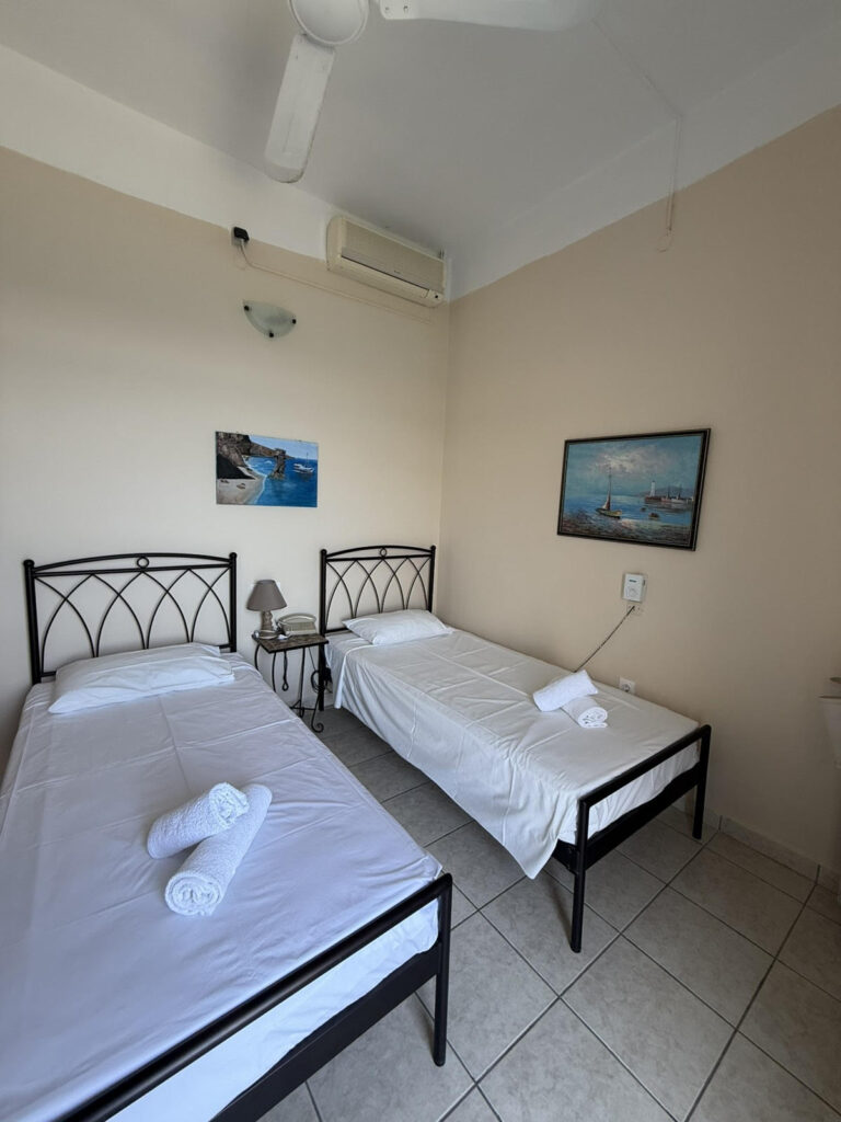 Όλα διαθέτουν λουτρό, τηλεόραση, τηλέφωνο, internet, κλιματισμό, mini bar και βεράντες με μοναδική θέα στο απέραντο γαλάζιο του Αιγαίου. Το πρωινό προσφέρεται στην ευρύχωρη τραπεζαρία του ξενοδοχείου μας. Το ξενοδοχείο Κόρθιον διαθέτει επίσης καθιστικό και ιδιωτικό χώρο στάθμευσης.