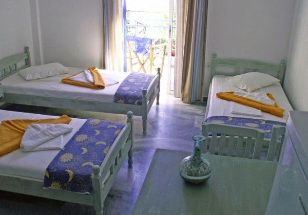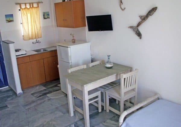 Για οικονομικές οικογενειακές διακοπές στην Άνδρο, έως 3 άτομα, σας προτείνουμε τα studios του κάτω ορόφου. Στο δωμάτιο έχετε τρία μονά κρεβάτια. Επιπλέον, προσφέρουν μοναδική θέα το απέραντο γαλάζιο του Αιγαίου στην παραλία μας Κυπρί και είναι ό,τι πρέπει για ερωτευμένους.