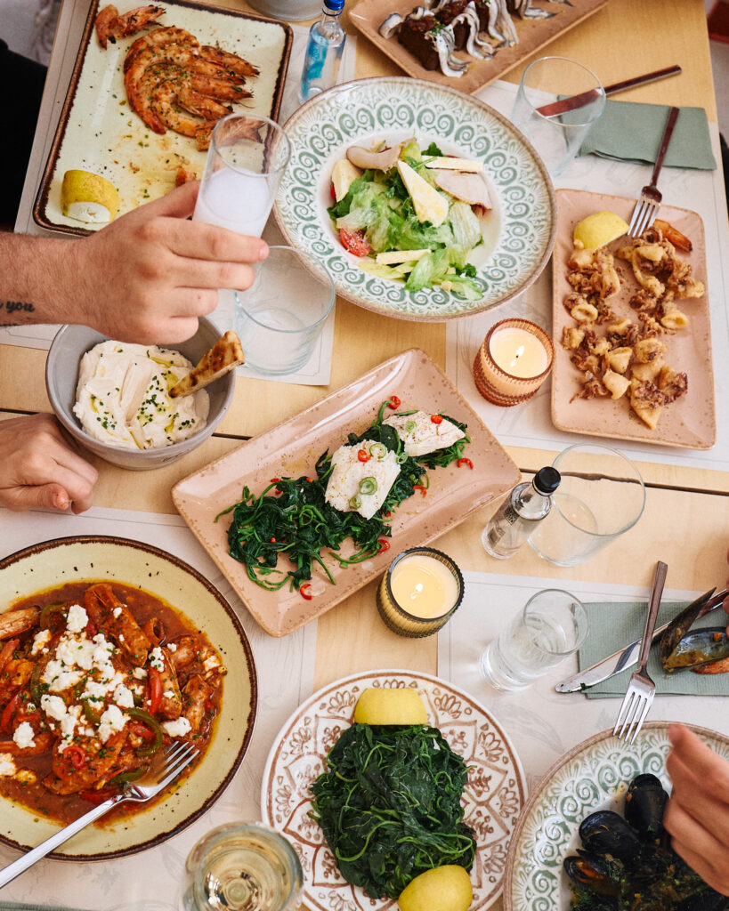 Δίπλα σε αυτές, παραδοσιακές γεύσεις της στεριάς αναδεικνύονται με την ίδια φροντίδα: χειροποίητα παστουρμαδοπιτάκια, πλατώ με τυριά Άνδρου και ιδιαίτερες σαλάτεςπου δίνουν έμφαση στη φρεσκάδα και τη δημιουργικότητα.Τα σπιτικά επιδόρπια –όπως η πορτοκαλόπιτα με παγωτό καϊμάκι ή ο σοκολατένιος κορμόςμε κονιάκ και μαρμελάδα από φρούτα του δάσους– ολοκληρώνουν την εμπειρία με τον πιο γλυκό τρόπο.