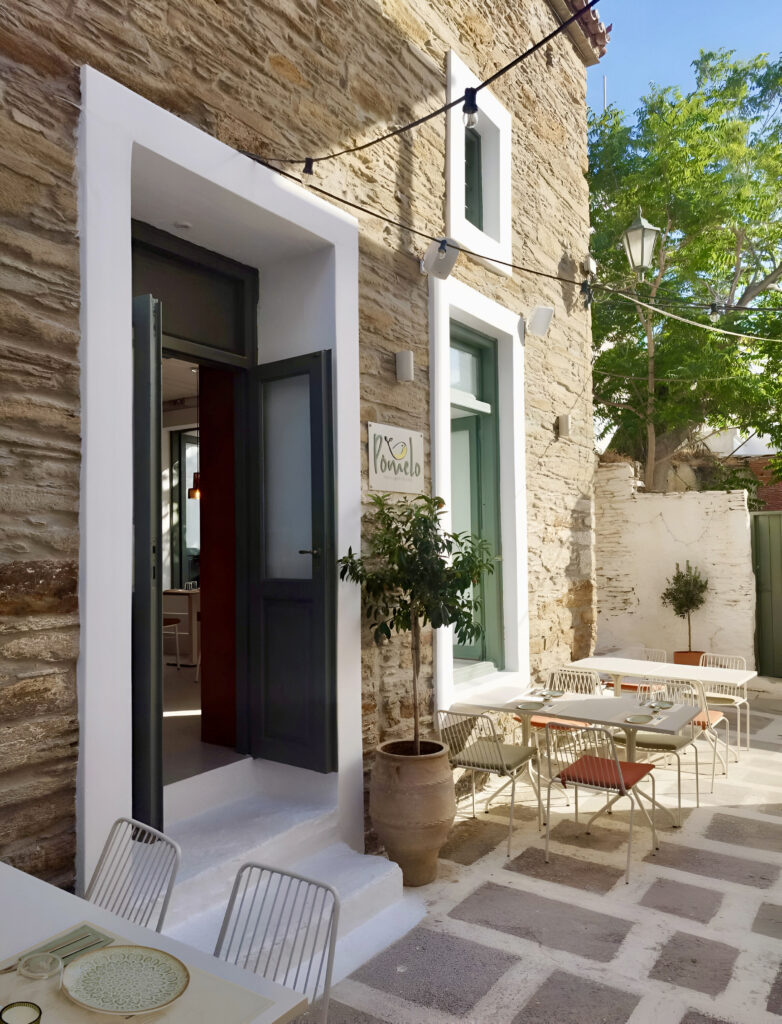 Το όνομα Pomelo λειτουργεί σαν μια γέφυρα ανάμεσα στην τοπική ταυτότητα και μια πιο μοντέρνα αίσθηση.Ανοιχτά από το μεσημέρι μέχρι αργά το βράδυ, με ροή που ταιριάζει στον νησιώτικο ρυθμό.Ούτε ταβέρνα ούτε fine dining — μια τίμια, φροντισμένη εμπειρία, όπου ο επισκέπτης νιώθει οικεία και χαλαρά.Θέλουμε ο καθένας που περνάει από το Pomelo να φεύγει με την αίσθηση ότι ανακάλυψε κάτι αυθεντικό, απλό και ξεχωριστό.