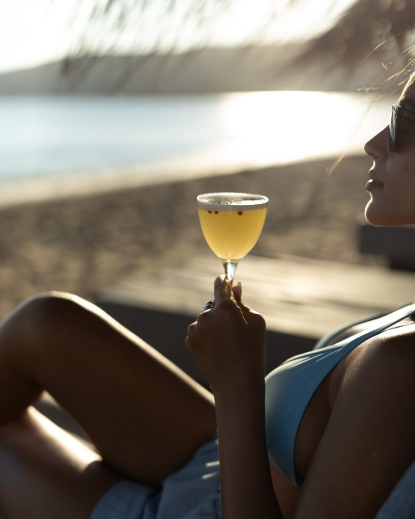 Στο beach bar του toπos, η εμπειρία συνεχίζεται με προσεγμένα cocktails, κλασικές και signature επιλογές, καφέδες, ποτά και κρασιά, πάντα με θέα το ηλιοβασίλεμα του Αγίου Πέτρου. Εδώ οι μέρες καταλήγουν συχνά σε βραδιές με μουσική, events και parties, όπου ο ήχος “δένει” με τον παφλασμό της θάλασσας και η άμμος γίνεται φυσική προέκταση της πίστας.
