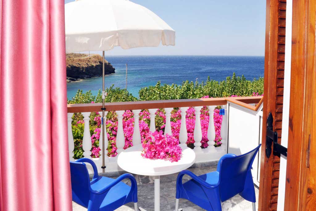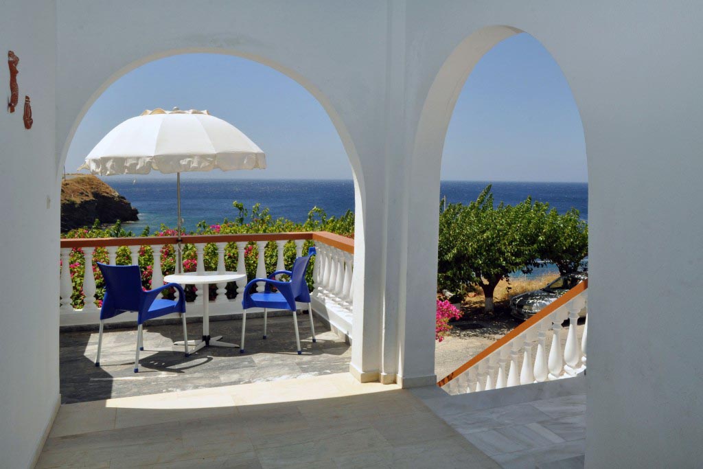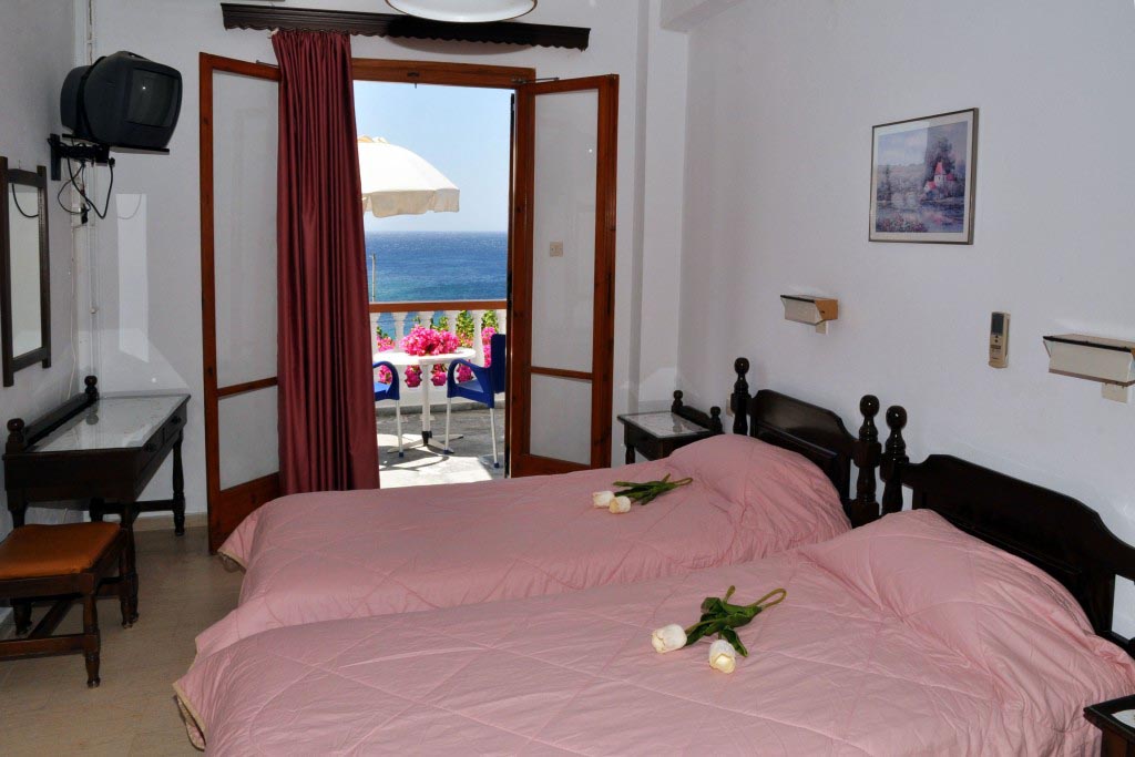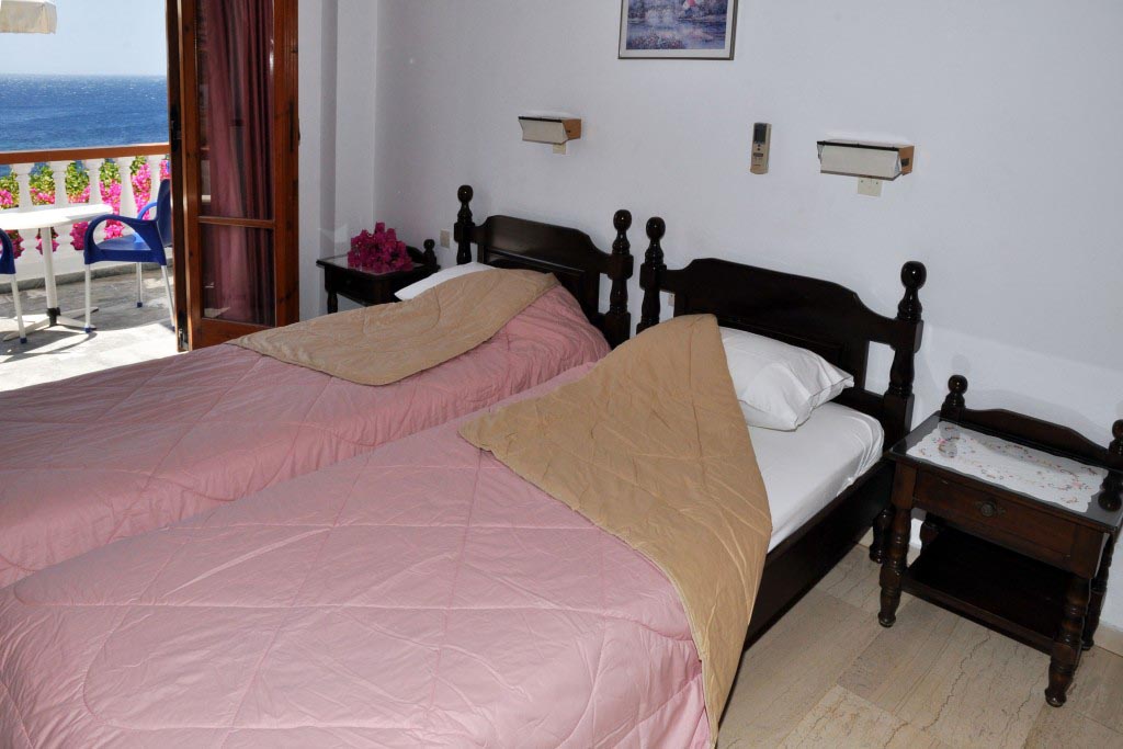Εδώ θα βρείτε, φιλική ατμόσφαιρα, δροσερά δωμάτια, δίκλινα, τρίκλινα και τετράκλινα, πλήρως εξοπλισμένα, με ατομικές βεράντες που βλέπουν στη θάλασσα για ένα γλυκό πρωϊνό ξύπνημα με θεά τις κόκκινες βουκαμβίλιες και το απέραντο γαλάζιο. Το κατάλυμά μας διαθέτει έξι δίκλινα δωμάτια, ένα τρίκλινο καθώς και ένα τετράκλινο διαμέρισμα, όλα με βεράντα και με θέα τη θάλασσα. Την απεριόριστη θέα επίσης μπορείτε να την απολαύσετε και κάτω από τα δέντρα που βρίσκονται στην όψη του συγκροτήματος.